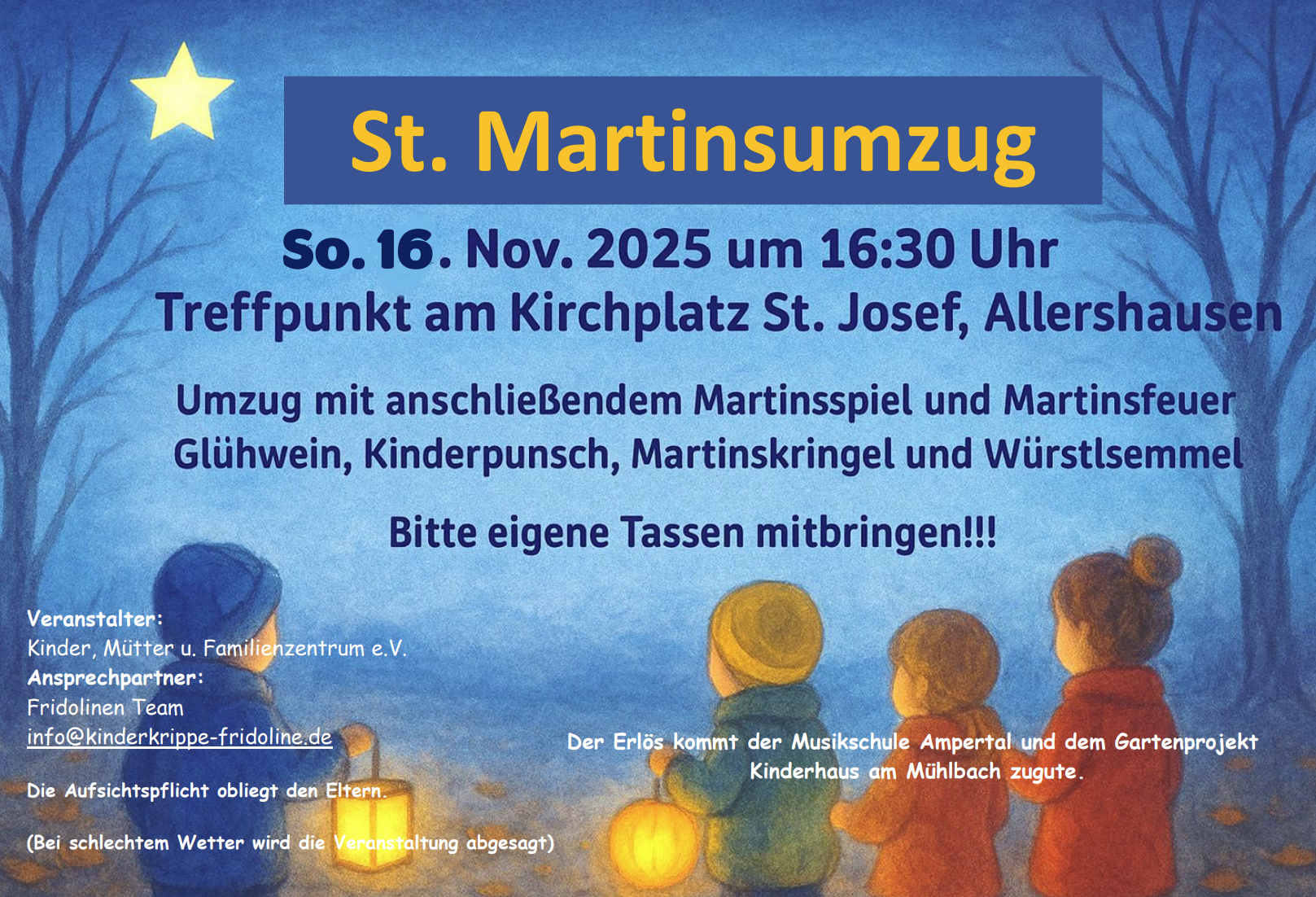 Ein herzliches Dankeschön an die Freiwillige Feuerwehr Allershausen, für die Absicherung des Weges und des Kirchplatzes und an die Musikschule Ampertal e.V., welche die Verantaltung musikalische begleitet. Der LuckyHorseRanch Hohenkammer danken wir von Herzen für das Martinspiel und Pferd.